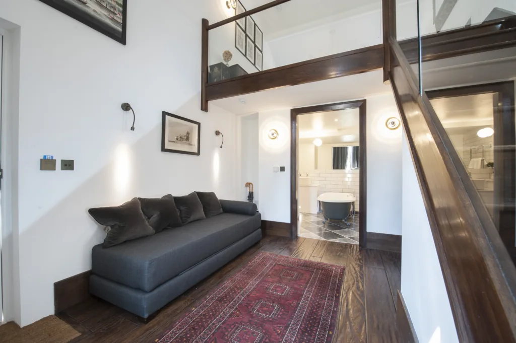 Comprises of five elegant, contemporary suites set on two floors with beautifully designed bathrooms including roll top free standing baths and oversize showers. With double sofa beds downstairs these suites make ideal family rooms.