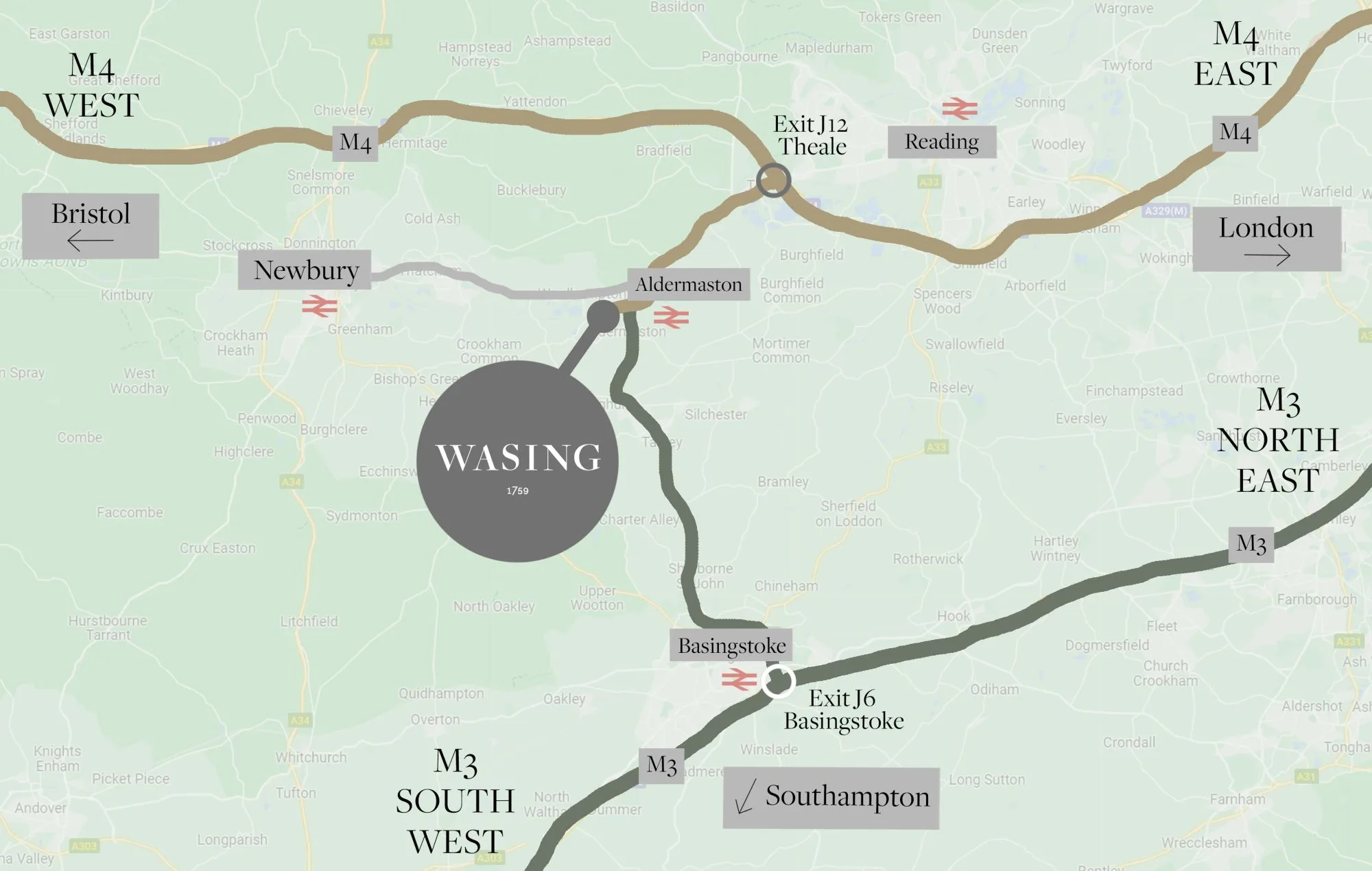 If coming from the North, leave the A34 at the M4 J13 Chieveley junction and take the M4 East. Leave the M4 at Junction 12.