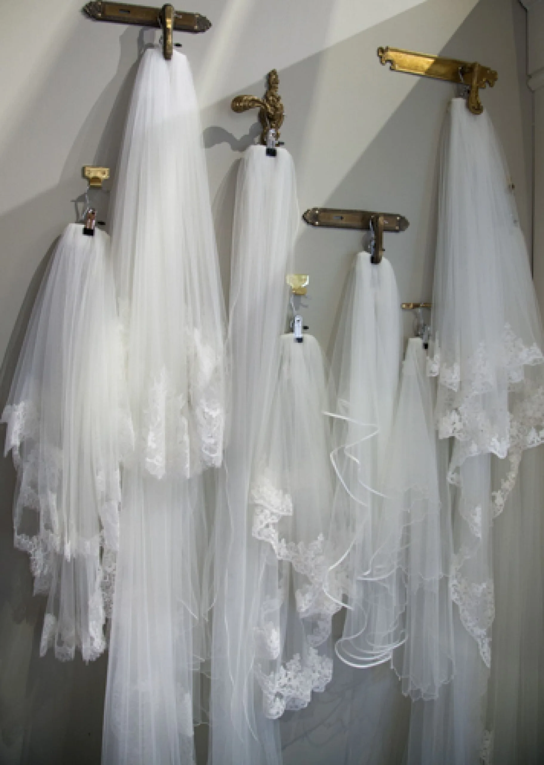 One trend that doesn’t seem to have gone away is the veil. According to Sam, 90% of brides opt for a veil despite not all of them wanting one when they first walk through the door. Bespoke headpieces are also still very much in fashion but Sam admits that you can never second guess what footwear a bride might choose.